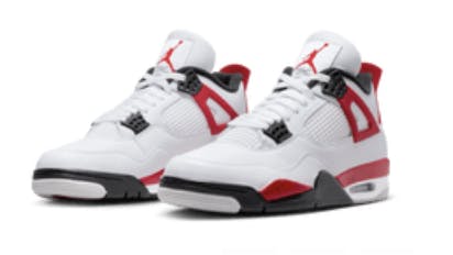 Constructed with white premium leather uppers, a mix of fire red and black is applied throughout, while the iconic mesh detailing and Jumpman logo retain their traditional placements. Sat atop a black, white, and fire red midsole, the style stays true to its roots, showcasing why the Jordan 4 model remains one of the most iconic Jordan models of all time.