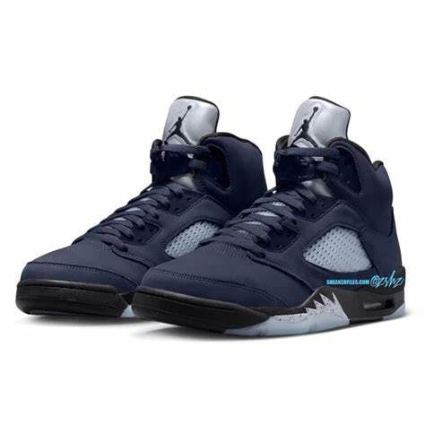 This iteration of the AJ5 takes on navy shades across the majority of the upper. Accenting hits of grey appear on details like the TPU eyestays while black hits take over branding details seen atop the 3M tongue and on the heel. For its material makeup, this colorway follows the same construction as the Air Jordan 5 Retro SE Craft with its multi-material build. Included in this is cracked suede, textile, and TPU. Rounding out the design is a white midsole with midnight navy accents on the shark teeth paired with a semi-translucent icy blue and midnight navy rubber outsole.