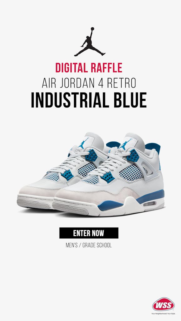 The Air Jordan 4 OG "Military Blue" is an original colorway of Michael Jordan’s fourth signature shoe that was re-released by Jordan Brand in May 2024. The Jordan 4 “Military Blue” is one of the retro basketball sneaker’s original colorways, and one of its rarest, too. The style was only released twice before, in 1989 and 2006, until it was brought back in 2024. The modern version of the “Military Blue” remains faithful to the original look, in that it features the same shape, color block, and “Nike Air” branding as the ‘89 version. The shoe has a white leather upper with a Neutral Grey overlay on the toe. Additional Neutral Grey accenting appears on the lace holder “wings.” White netting is layered over Military Blue mesh on the mid-panel and tongue. More Military Blue accenting comes into play on the mudguard and lace eyelets, and on the heel counter with “Nike Air” detailing. A blue Jumpman is found on the tongue. Underfoot, a white rubber midsole and grey rubber outsole complete the look.