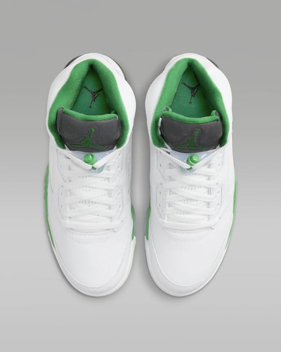 Lucky Green is back again, bringing its charm to the AJ5. This auspicious edition brings an White leather and Lucky Green accents to the the original design's famously bold aesthetic. The fierce zig-zag midsole detail and iconic lace locks ensure there's no mistake about what you're wearing. And for a little extra luck, number 23 is embroidered on the outer heel for some GOAT-given good fortune.