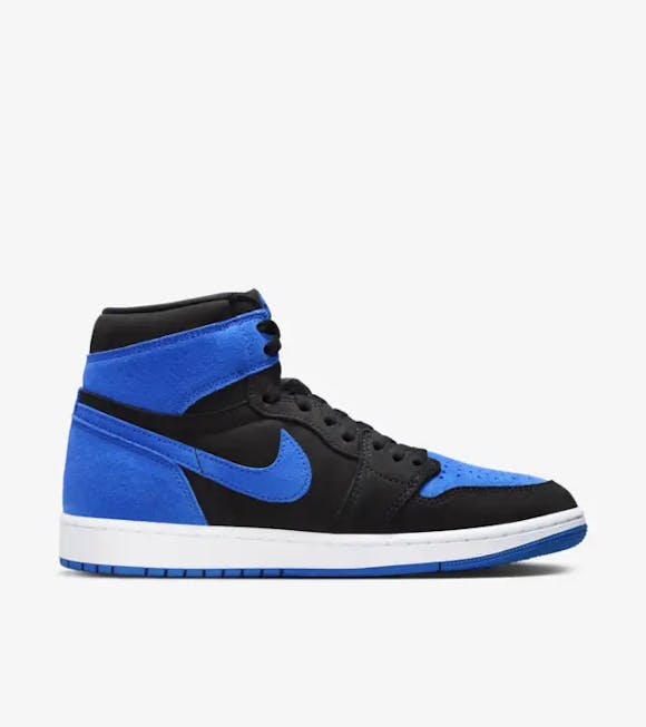 The AJ1 forever changed the footwear game. Building on its legacy, this regal edition pairs premium Royal Blue suede with rich Black leather. Classic Nike Air branding on the tongue and insole is complemented by the Wings logo on the padded, high-cut collar. The signature star-studded outsole gets the Royal Blue treatment, letting you walk the dynasty forward with each step.