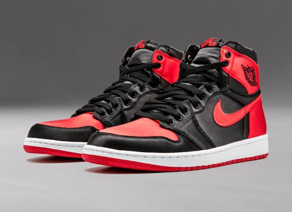 Unveiling the epitome of timeless design with the Jordan 1 Retro High OG Satin Bred (Women's) in the ever-classic Black/University Red/White colorway. The sophisticated satin finish adorns the iconic silhouette, exuding a blend of vintage charm and modern-day chic.